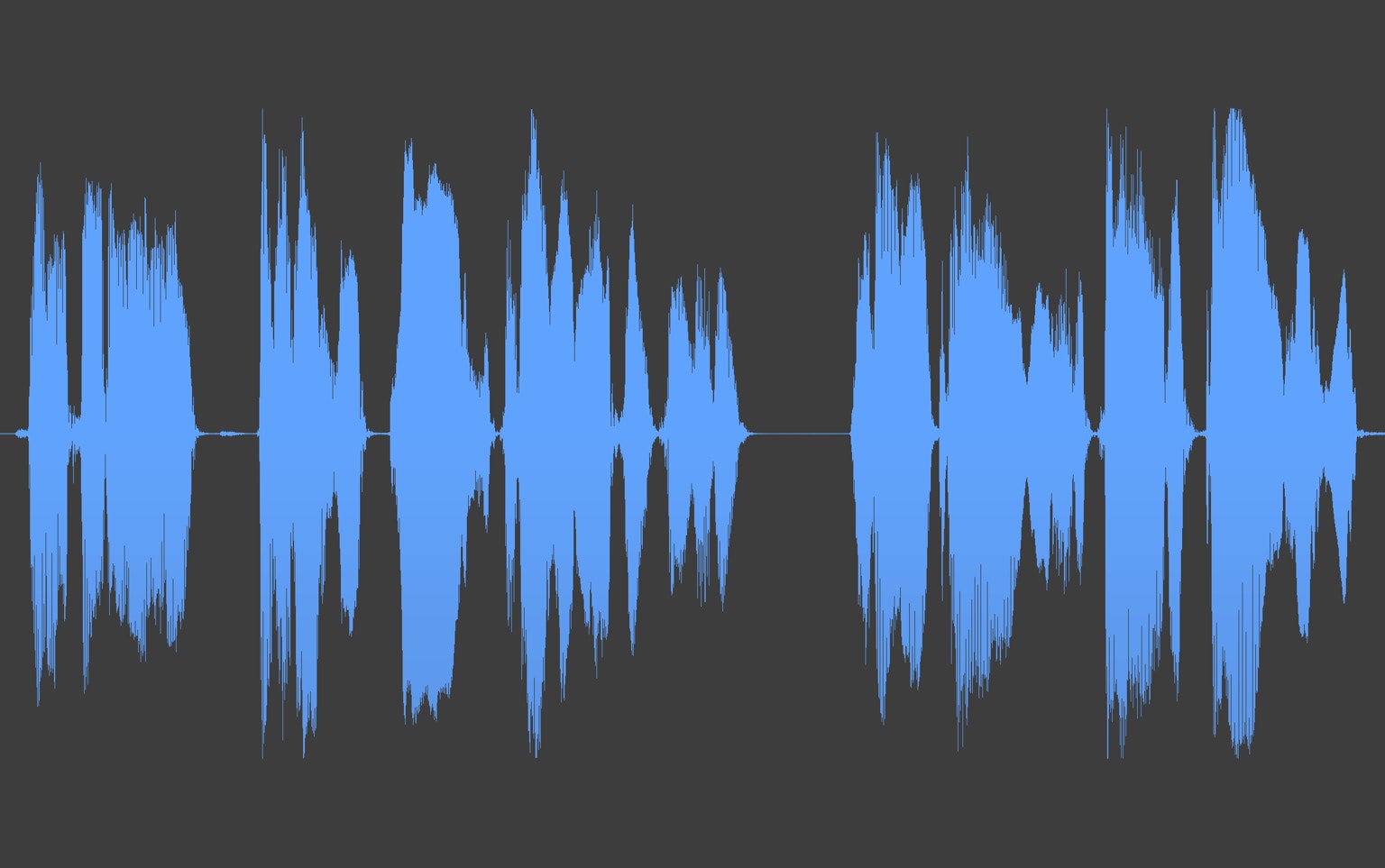 Your audio should look more like this. Consistent levels and noiseless silence.